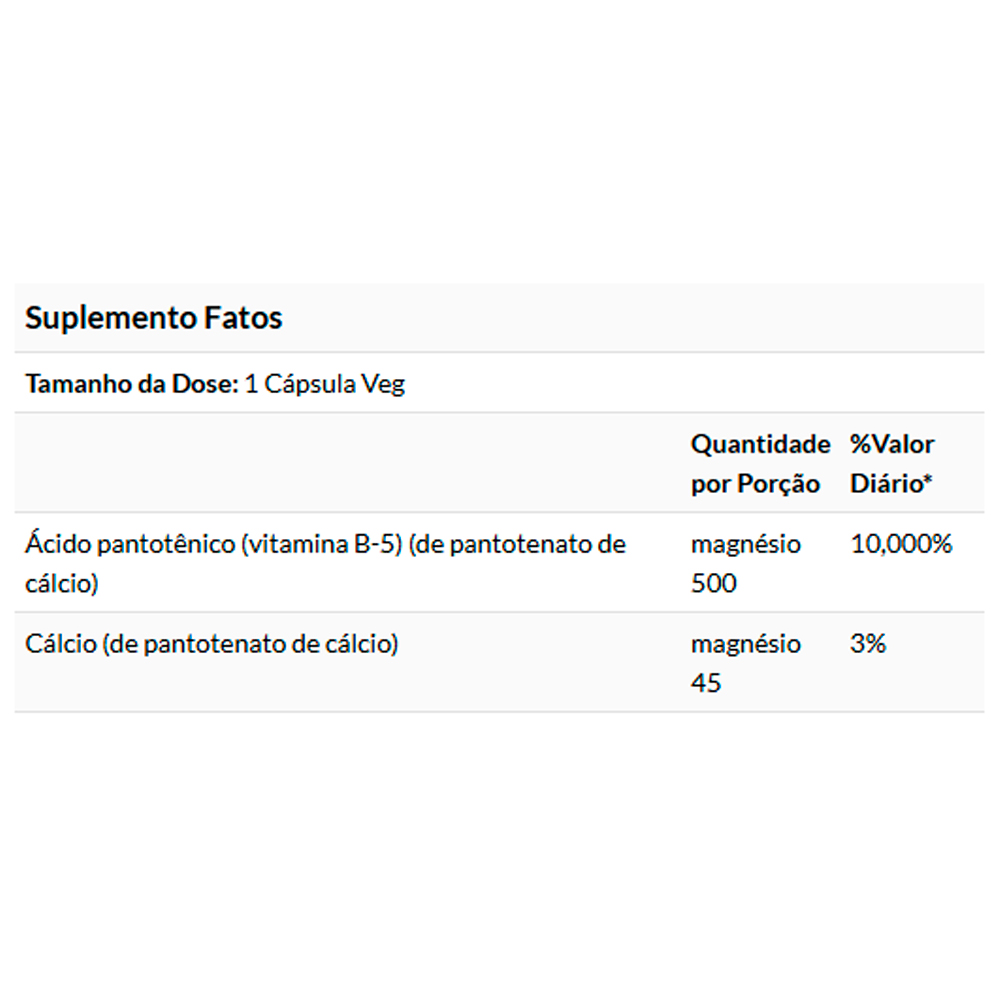 Vegan Formula: These Pantothenic Accidents Capsules Were Created with the AIM OFFERING A Product That Respects The Choices of Vegan Consumers. Developed Without the Use of Components of Animal Origin, it is ideal for Those Looking for Supplement that aligns with the lifestyle.;