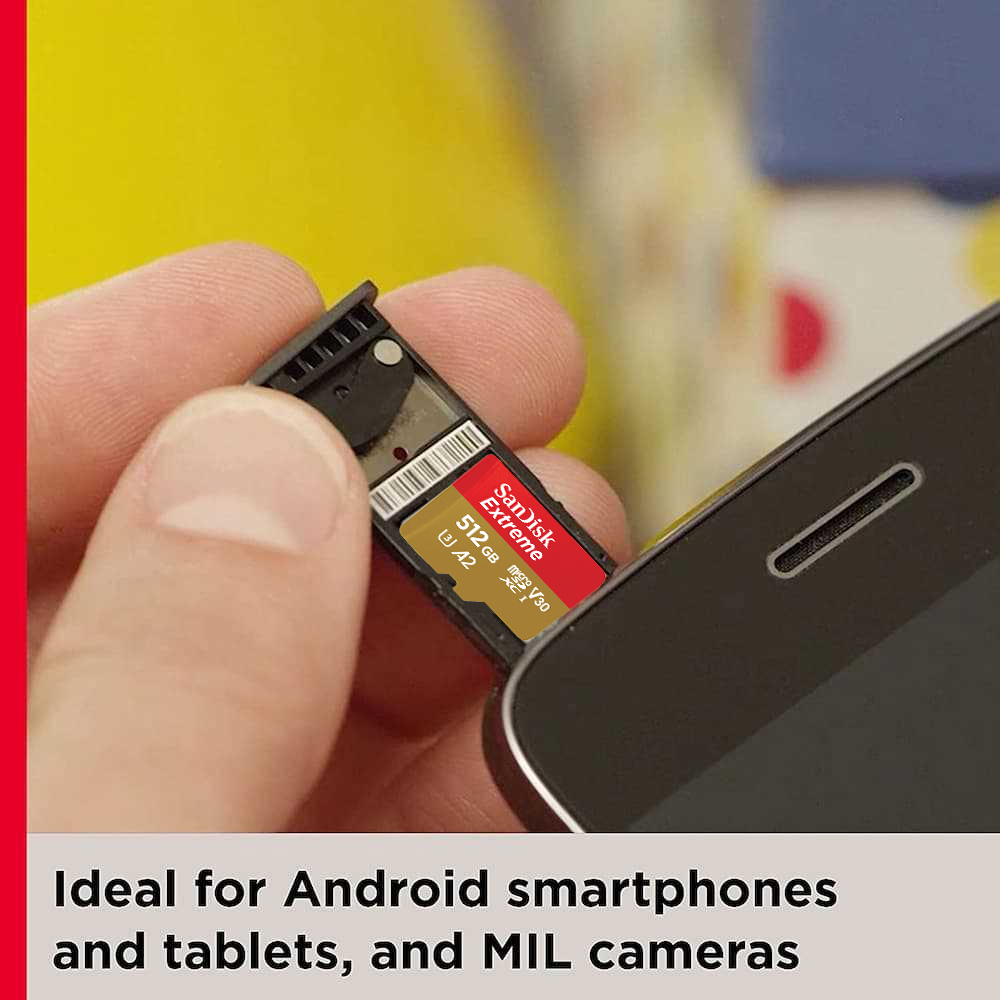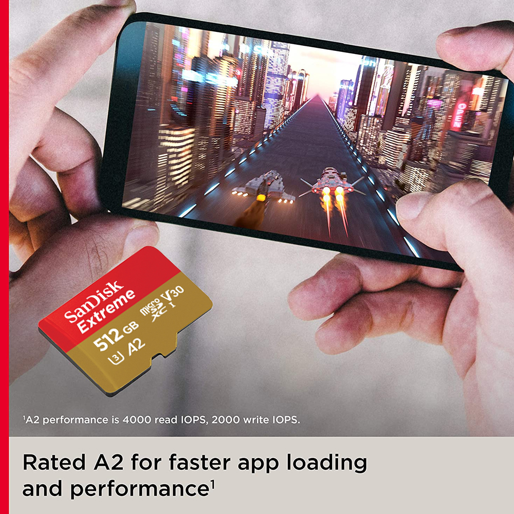 Sandisk Micro Sd Memory Card 512gb Extreme MicroSd Card 190Mbs Write Speed up to 130Mbs A2 Certification Class Speed Video V30 Uhs-I U3 Bus Interface