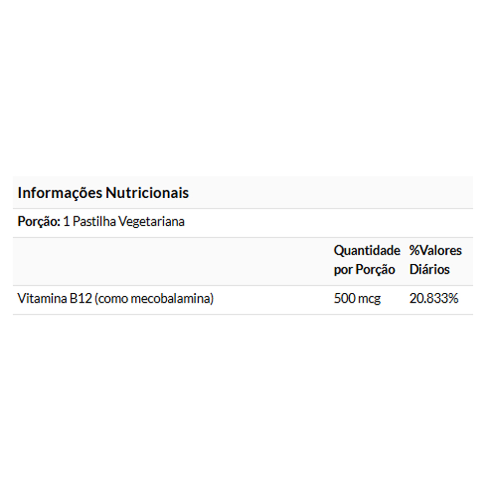 contains vitamin B12 in the form of methylcobalamin, an active and widely used version of this nutrient. Its composition was developed to provide this element effectively, complementing daily feeding.